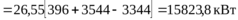 | 2.11 ПРОВЕРКА ОПРЕДЕЛЕНИЯ РАСХОДА ПАРА НА ТУРБИНУ ПО БАЛАНСУ МОЩНОСТЕЙ Мощность потоков пара в турбине: первого отбора второго отбора третьего отбора четвертого отбора пятого отбора шестого отбора седьмого отбора восьмого отбора мощность потоков пара турбопривода мощность конденсационного потока сумма мощностей потоков пара в турбине мощность на зажимах генератора |