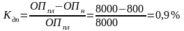 Процент выполнения договорных обязательств рассчитывается делением разности между плановым объемом отгрузки по договорным обязательствам (ОПпл) и его не выполнением (ОПн) на плановый объем (ОПпл):