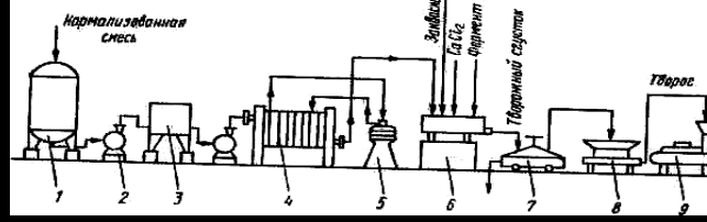 Схема технологической линии производства творога традиционным способом приведена на рис. 1