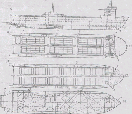 Схема общего расположения лихтеровоза «Борис Полевой»: