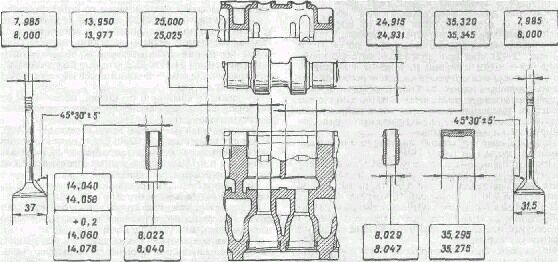 Основные размеры головки цилиндров и деталей механизма привода клапанов даны на рис. 3.1.
