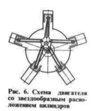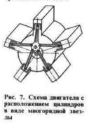 ателей очень нагружены и имеют сложную конструкцию. Последнее особенно характерно для двигателей с цилиндрами расположенными в виде многорядной звезды (рис. 7), которые обладают меньшими размерами и массой при большей мощности по сравнению с другими одновальными двигателями