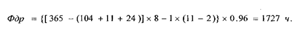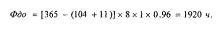  - коэффициент, учитывающий потери рабочего времени по уважительной причине (0,96);