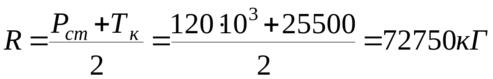 где R– реакция в опоре, действующая на пятник кузова со стороны подпятника тележки, кГ.