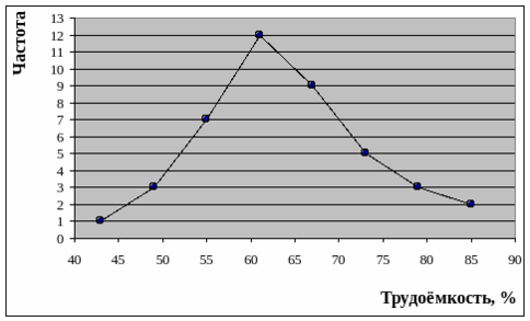 | Трудоемкость, % | 43 | 49 | 55 | 61 | 67 | 73 | 79 | 85 |