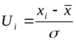 | Ui | -2,18 | -1,56 | -0,93 | -0,30 | 0,33 | 0,96 | 1,59 | 2,21 |