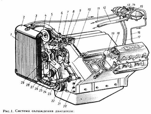 1.3. Устройство системы охлаждения Зил-130.