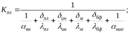 - термическое сопротивление теплопроводности материала плит, слоя инея, масла, материала блок-форм.