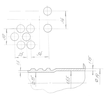 Морозильные плиты имеют конический профиль. При расположении в двух торцевых дисках обе стороны плиты используются для замораживания рыбы. Ка ждая плита Разделена на две равные части с поперечной планкой. По каналам морозильных плит циркулирует х.а. (R-22), который поступает и отводится через малый вал ротора, разделённый на две части и два кольцевых коллектора. Диаметр подводящей медно-никелевой трубки – 10 мм, отводящей 15 мм. Для равномерного распределения жидкого х.а. по морозильным плитам на входе подводящих трубок установлены дроссельные шайбы с внутренним диаметром 3,1 мм.