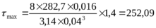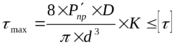 Максимальное напряжение пружины демпфера определяется по формуле: