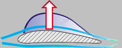 Антикрыло сконструировано таким образом, что у нижней поверхности расстояние между передней и задней частью крыла больше, чем у верхней. Поэтому воздух, огибающий нижнюю часть крыла, должен течь быстрее того, что огибает крыло сверху для того, чтобы достичь той же точки в одно и то же время. По уравнению Бернулли, если скорость движения воздуха возрастает, давление его уменьшается и наоборот, поэтому более быстро движущийся воздух, проходящий внизу крыла, будет оказывать меньшее давление, чем тот, что проходит сверху. То есть в результате создается разница давлений и сверху давление сильнее, что позволяет прижимать болид к поверхности трека - вот вам и прижимная сила!