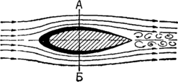 Рис. 1.12 Аэродинамический спектр каплеобразного тела (профиля крыла), помещенного в поток под углом