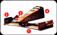 Обратная ситуация с антикрыльями (см. Рис 1.15). Антикрылья функционируют абсолютно по тому же принципу, но обеспечивают эффект "прилипания" болида к трассе, происходит это также за счет их формы. То есть, зная об обычном крыле, мы легко можем представить себе, что есть антикрыло. Достаточно просто повернуть обычное крыло передней частью вниз.