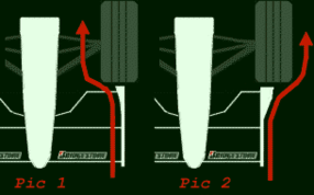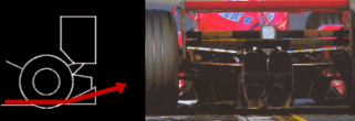 Такая особенность элерона позволяет проникать в радиатор большему количеству воздуха, а также пропускать воздушный поток по "днищу" болида, который затем попадает в диффузор, обеспечивая прижимную силу. В случае если элероны не имеют такого сужения, охлаждение радиатором значительно уменьшается и температура мотора сильно возрастает. Также важно, что чем ниже будет расположено переднее антикрыло, тем лучше это влияет на проникновение воздушного потока в радиатор и диффузор, однако, всем известно, что имеется критическое положение, при котором антикрыло уже начнет задевать трассу.