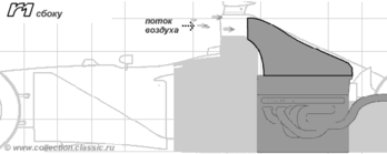 Таким образом, с помощью боковых дефлекторов достигается две цели: снижение лобового сопротивления и более эффективное охлаждение. Устанавливаются они, как правило, между передними колесами и боковыми понтами болида (см. Рис. 2.11).