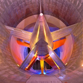 Воздушный поток, достигающий скорости 240 км/ч, создает циклопических размеров (диаметр около 13 метров) вентилятор, который приводится в действие электродвигателем мощностью 4500 л.с. Впечатляющий поперечник трубы вовсе не означает, что продувать в ней GM собирается даже крупногабаритные грузовые автомобили. Согласно законам аэродинамического моделирования, воздушный поток, огибающий машину, должен быть достаточно объемным — чтобы избежать влияния стен, искажающих картину обтекания. Как и любой прибор такого рода, мичиганская новинка оборудована точнейшими «весами», замеряющими аэродинамическое сопротивления автомобиля в целом и его отдельных частей. При необходимости исследователи могут прибегнуть к классическому методу визуализации — струей дыма, которая наглядно иллюстрирует ход воздушных потоков.