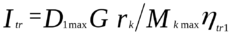 -- коэффициент нагрузки ведущих колес автомобиля; рекомендуемые значения = 0.65…0.8; максимальный крутящий момент двигателя, в Н*м, берется из скоростной характеристики для карбюраторных двигателей; G – полный вес автомобиля, Н; -- КПД трансмиссии автомобиля на первой передаче, подсчитывается по формуле: