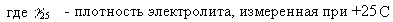 Если измерения проводились при температуре Т, отличной от +25С, то необходимо откорректировать показания плотности по формуле: