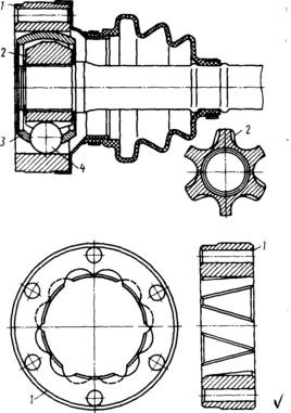 Упругие полукарданные шарниры (рис.14) устанавливаются главным образом в карданных передачах легковых автомобилей, и в зависимости от конструкции угол наклона вала может быть 8 100.