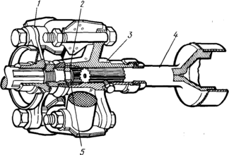 Типичная конструкция карданного шарнира неравных угловых скоростей является крестовина с игольчатыми подшипниками, размещенными в колпачках.