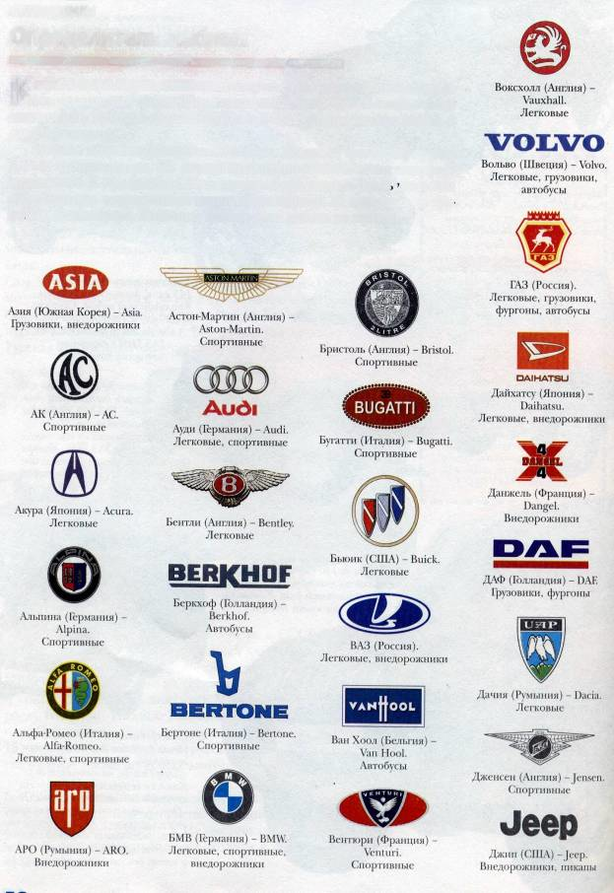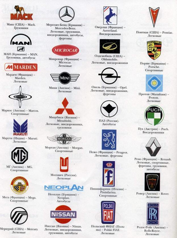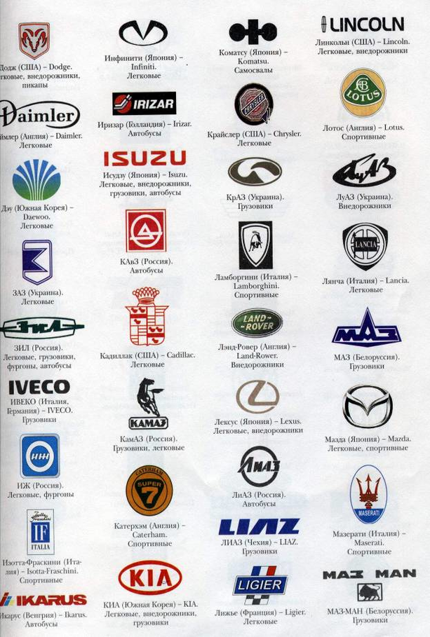 Перечень эмблем прилагается в приложении, по которому легко можно определить завод или фирму, которая изготовила тот или иной автомобиль, где их делают.