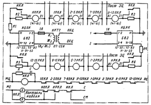 В случае повреждения любой из кабельных цепей, например при размыкании или замыкании ее с другой цепью или землей, отпускают якоря (одно или сразу несколько) соответствующие реле, которые отключают питание общеконтрольного реле. В случае размыкания кабельной цепи контрольные реле лишаются питания, и на табло загорается в мигающем режиме контрольная красная лампа. При сообщении между жилами или понижении сопротивления изоляции между ними и землей лишается питания одно или несколько контрольных реле, включенных между цепями, реле НПКЛ и НРКЛ остаются под током. На табло мигает белая лампа.