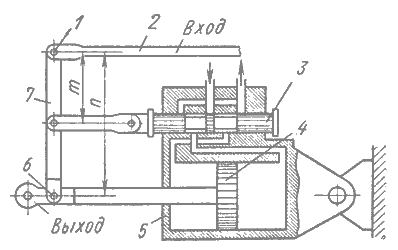 5 - корпус силового цилиндра; 6 - шарнир; 7 - дифференциальный рычаг