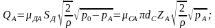 Уравнения пропускной способности ветвей А и В гидроусилителя, в которых нерегулируемый дроссель и регулируемое сопло пропускают одинаковый расход, имеют вид