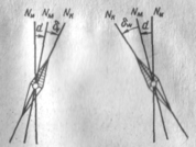 Вертикальная плоскость, проходящая через ось свободно подвешенной магнитной стрелки компаса, установленного на судне, называется плоскостью компасного меридиана, а след от пересечения этой плоскости с плоскостью истинного горизонта - компасным меридианом NKSK. Направление компасного меридиана совпадает с диаметром картушки 0—180°.