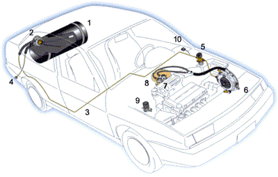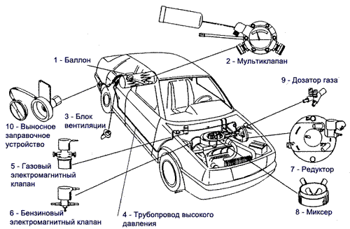 Рисунок 2 Схема ГБО третьего поколения для карбюраторного автомобиля.