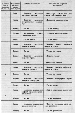Ознайомивши з розташуванням важелів і педалей на пульті керування екскаватора, машиніст повинний засвоїти послідовність їхнього включення при роботі з різними видами робочого устаткування.
