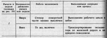 Таблиця 1. Важелі керування екскаваторами ЭО-5123