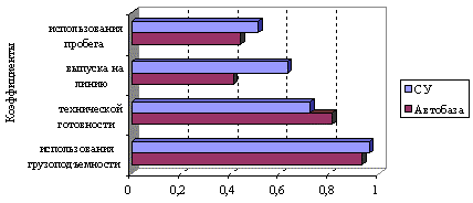 Рисунок 3 – Основные эксплуатационные показатели работы подвижного состава СУ и автобазы (2005 г.)