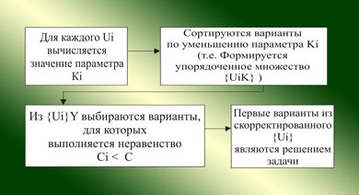 На втором проводится распределение вариантов по обобщенному критерию оптимизации (К), в качестве которого может выступать отношение денежного притока к объему инвестиций, сокращение производственных запасов или длительность логистического цикла и др. (рисунок 5).