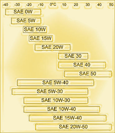 Ряд всесезонных масел: SAE 0W-20, 0W-30, 0W-40, 0W-50, 0W-60, 5W-20, 5W-30, 5W-40, 5W-50, 5W-60, 10W-20, 10W-30, 10W-40, 10W-50, 10W-60, 15W-30, 15W-40, 15W-50, 15W-60, 20W-30, 20W-40, 20W-50, 20W-60. Обозначение состоит из комбинации зимнего и летнего ряда, разделенных тире. Всесезонные масла должны удовлетворять одновременно критериям и зимнего, и летнего масла. Чем меньше цифра, стоящая перед буквой W, тем меньше вязкость масла при низкой температуре, легче холодный пуск двигателя стартером и лучше прокачиваемость масла по смазочной системе. Чем больше цифра, стоящая после буквы W, тем больше вязкость масла при высокой температуре и надежнее смазывание двигателя при жаркой погоде.