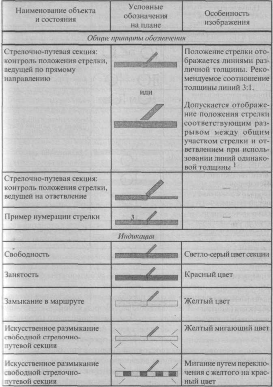 общие элементы (название станции, цвет фона, особые случаи единой индикации элементов путевого плана при пропадании контроля, а также неконтролируемых устройствами СЦБ, изолирующие стыки, в том числе негабаритные и др.);