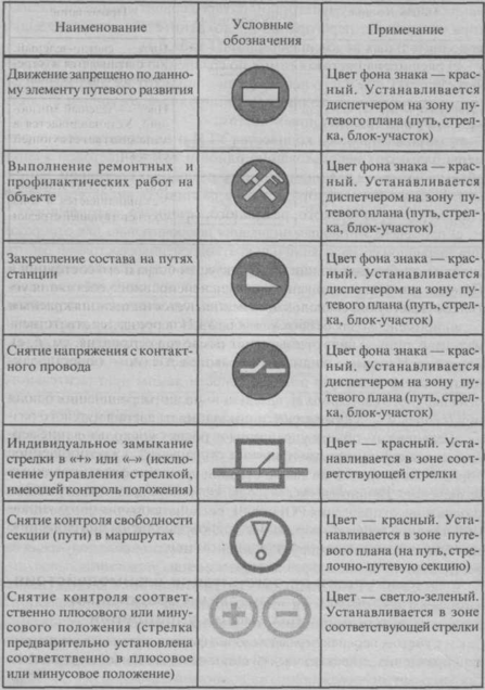 исключение ошибочных действий персонала блокировкой пользования элементами путевого плана для движения поездов, где установлен условный знак;