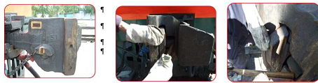 Отсутствие признаков перегрева буксовых подшипников (на ощупь по внешним признакам), герметичность букс и отсутствие трещин в корпусе, простукиванием буксовых болтов определяем надежность крепления болтами заземляющих устройств и буксовой крышки. Ослабшие болты затягиваем, отсутствующие болты или имеющие сорванную резьбу, заменяем новыми.