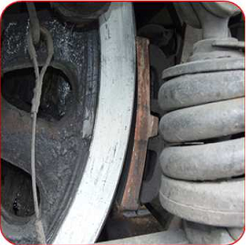 Осмотреть визуально состояние тормозных колодок и тормозных башмаков, простукиваем молотком для определения их целостности. Проверяем толщину тормозных колодок и отсутствие в них сквозных поперечных трещин. Минимально-допустимая толщина колодок 15мм. Определяем выход колодки за наружную грань бандажа. Допускается не более 10мм.