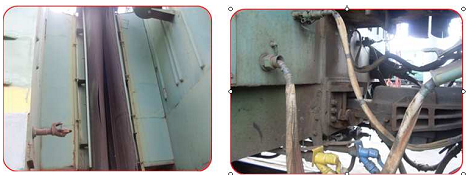 Проверить межкузовные соединения на отсутствие трещин в деталях, изломов и деформаций, соединение соединительных рукавов, межкузовных соединений штепсельных разъемов, отсутствие протертости, прорывов и оголенных участков проводов и кабелей.