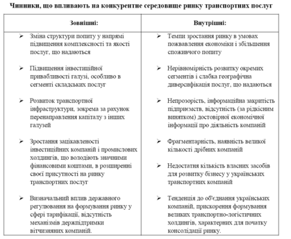 «Транспортні компанії та транспортні послуги на ринку послуг»