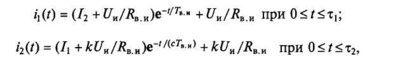 где UH и Un - напряжения, приложенные к цепи возбуждения соответственно во время импульса и паузы тока возбуждения; RB„ и RBn - сопротивления цепи возбуждения соответственно во время импульса и паузы; LB. „ и LB п - индуктивности цепи возбуждения соответственно во время импульса и паузы.