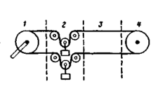 Рис.1.1 Схема управления объектами при механической централизации: 1 - управляющий рычаг; 2 - компенсатор; 3 - линия передачи; 4 – привод движением, существенно уменьшается число стрелочников, работающих в тяжелых и небезопасных условиях.