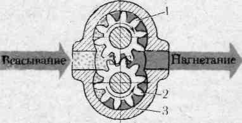 Рис. 2.1. Схема шестерінчастого насоса з зовнішнім зачепленням: