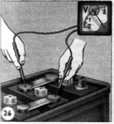 При полном коротком замыкании аккумулятор зарядить нельзя, а напряжение его будет равно нулю. Короткое замыкание пластин определяется сравнением ЭДС аккумуляторов батареи с напряжением, измеренным вольтметром без нагрузки (Рис. 4).