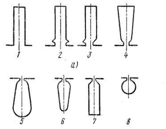 Мал. 4. Найпоширеніші типи і форми пазів електричних машин: