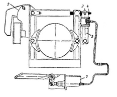 Устройство Грейферного захвата показано на рисунке 2. Грейфер состоит из двух челюстей 5, соединенных шарнпрно на нижней траверсе 8. Тяги 4 соединяют челюсти с верхней траверсой 2. Канатом 3 подвижная головка 6 соединяется с верхней траверсой 2 и со скобой 1, с помощью которой грейфер навешивается на крюк механизма подъема крана. В момент зачерпывания головка 6 и траверса 8 связаны между собой захватами 7, укрепленными на траверсе 8. При подъеме скобы 1 происходит сближение траверсы 2 и головки 6. При этом челюсти, поворачиваясь вокруг осей шарниров на траверсе 8, внедряются в сыпучий груз и зачерпывают его. После того как челюсти сомкнутся, грейфер в закрытом состоянии перемещается к месту разгрузки опускается на опорную поверхность при этом захваты 7 раскрываются и головка 6 отсоединяется от нижней траверсы. Подъем скобы 1 вызывает подъем верхней траверсы 2, что приводит к раскрытию грейфера и его автоматическому опорожнению. Грейфер можно раскрыть и не опуская его. В этом случае от запирающего устройства опускается вниз трос или цепь, за которые надо потянуть, что бы захваты 7 отпустили головку 6 и дали возможность челюстям раскрыться.