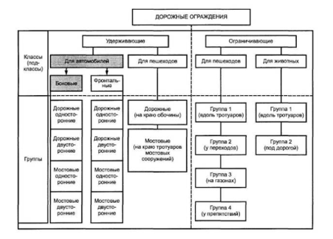 При этом классификацией ограждений считается система соподчиненных понятий в области дорожных ограждений, используемая для установления связей между этими понятиями[1].