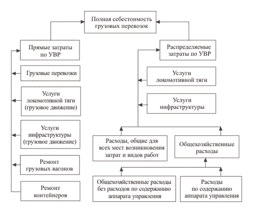 При расчетах удельного веса зависящих и независящих расходов по основным видам деятельности возникает проблема, связанная с распределением общехозяйственных и общих для всех мест возникновения расходов по видам деятельности, поскольку расходы по одному виду деятельности входят в состав расходов другого вида деятельности. Например, к расходам на грузовые перевозки относится часть затрат по видам деятельности «Ремонт подвижного состава», «Услуги локомотивной тяги», «Услуги инфраструктуры». В настоящее время такие затраты на железнодорожном транспорте принято называть расходами по укрупненному виду работ (УВР).
