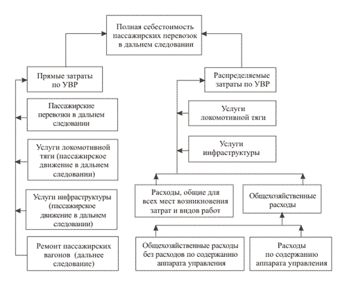 Схема формирования себестоимости пассажирских перевозок в дальнем следовании (Аналогично выглядит схема формирования себестоимости пассажирских перевозок в пригородном сообщении)